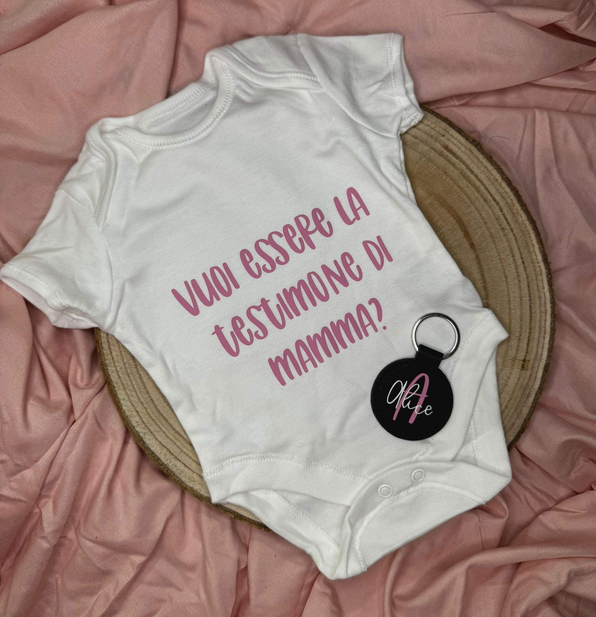 Box regalo personalizzato per Padrino o Madrina, composto da un body e un portachiavi. Indicare nelle note cosa scrivere sui prodotti o contattarmi su WhatsApp per concordare le personalizzazioni.