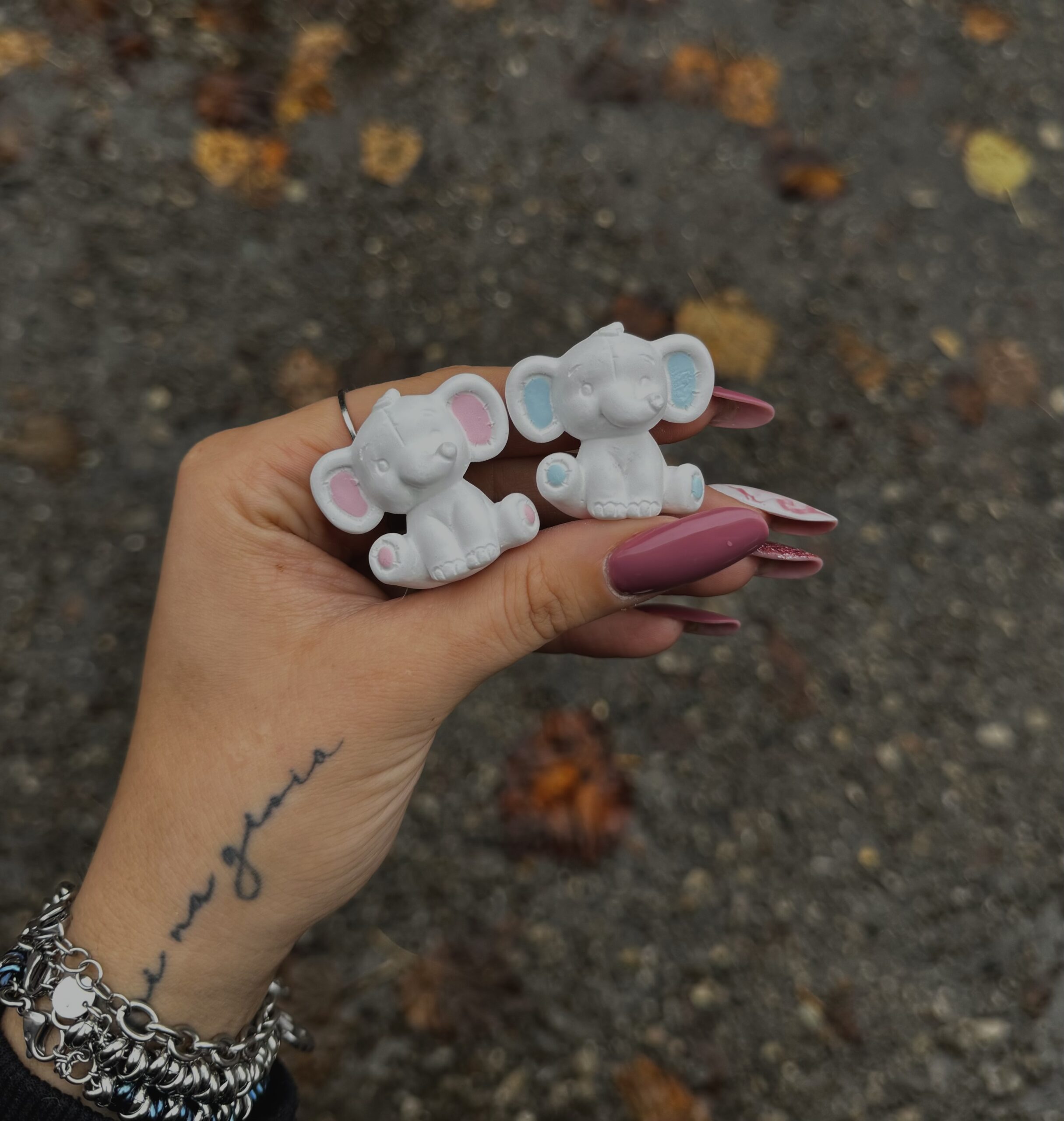 Bellissimo elefantino con decorazione rosa o azzurro in gesso calamitato.