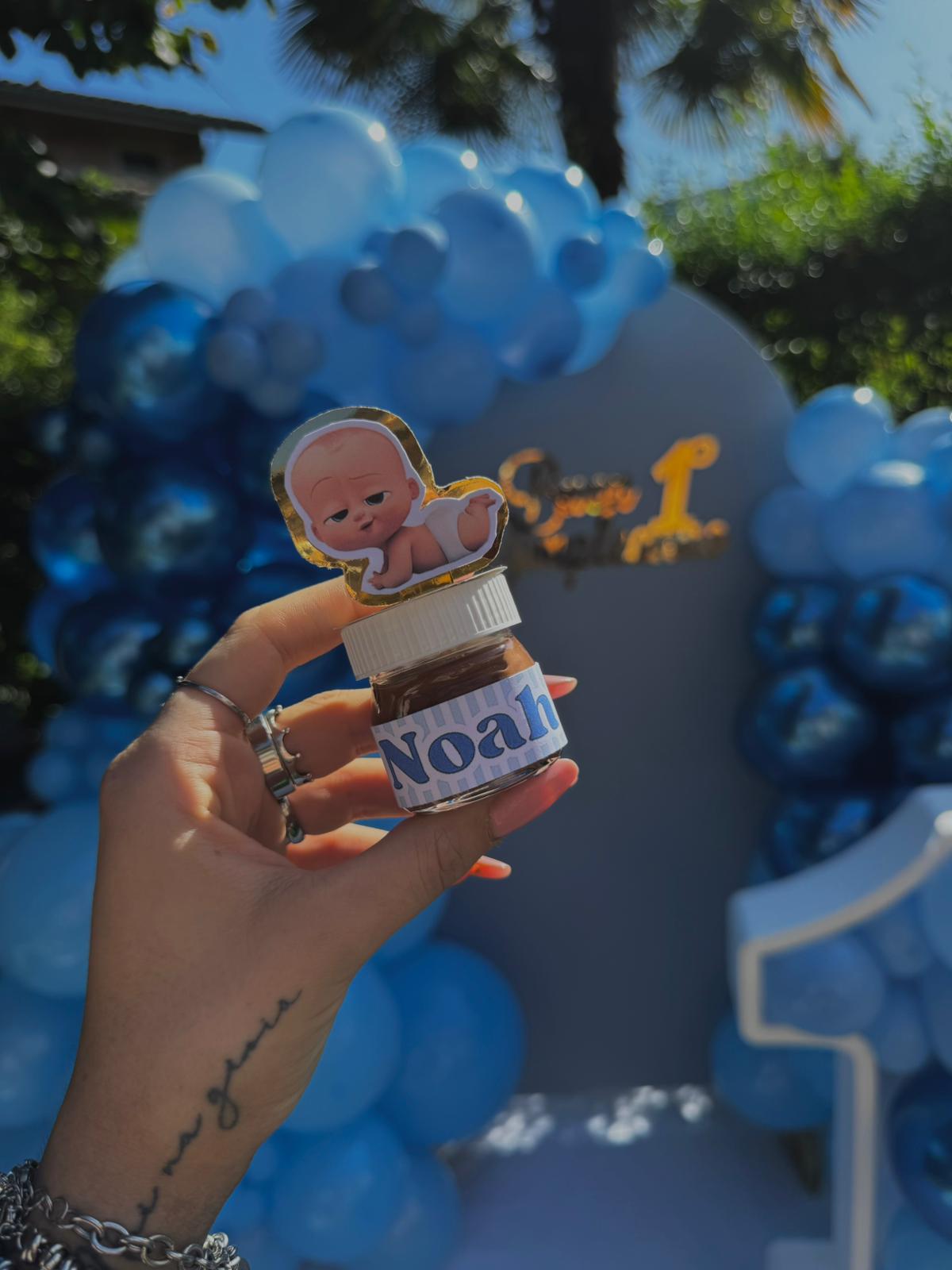Le nutelline personalizzate sono ottime sia come gadget da regalare agli invitati e sia come decorazione per l’evento. Sono fatte a mano ed ogni grafica è realizzata unicamente per te. Dettagli del prodotto: nutelline con fascia personalizzata. Decorazioni: scegli un personaggio o un tema e abbinalo a un nome o una frase per rendere le tue nutelline uniche e rare. Dimensioni: 25gr sigillato. Ogni grafica è personalizzata al 100% ed ogni prodotto è realizzato a mano. Ogni prodotto è realizzato solo su ordinazione.