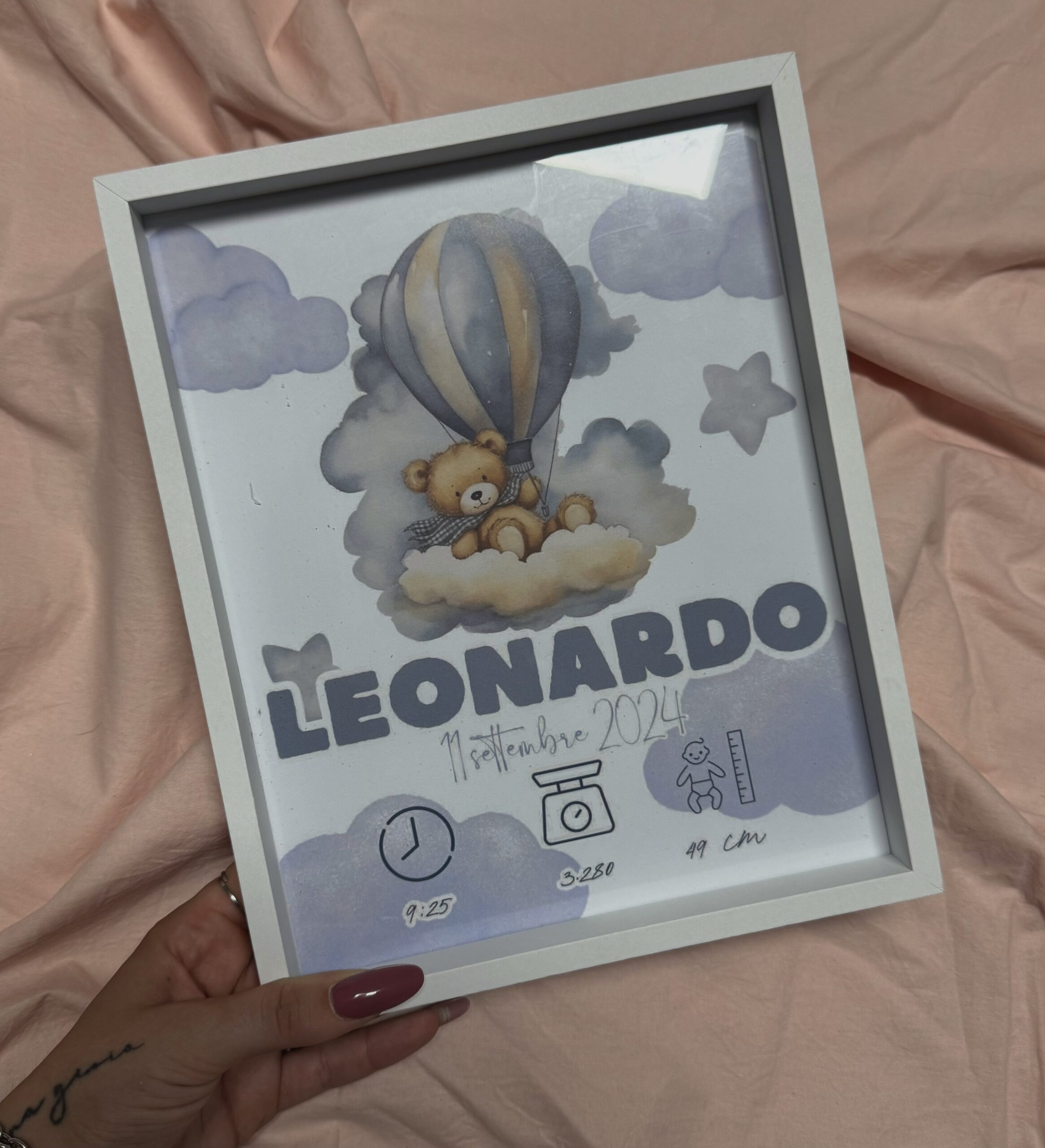 Desideri un ricordo della nascita del/la tuo/a bimbo/a ?? Quale idea migliore di un bellissimo quadretto nascita personalizzato. Personalizza grafica , colori , personaggi e caratteri e realizza il tuo quadretto nascita.